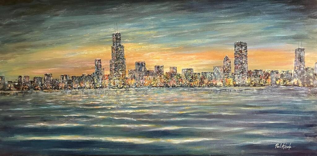 Original Oil Painting Of The Chicago Sky Line 48x24