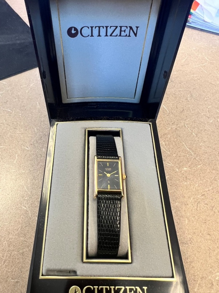 Movement: Citizen Eco-Drive solar-powered quartz, which eliminates the need for battery changes by charging from any light source.