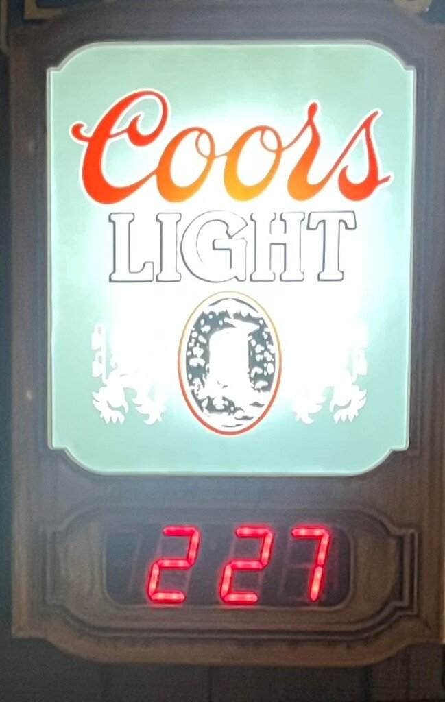 The sign features the classic Coors Light logo and digital time display. It is a collectible bar sign, often used for man caves or pubs. This item was produced for advertising in bars and restaurants, rather than for general retail sale. This clock is considered a collectible and can be found up for auction. Faux hardwood frame.