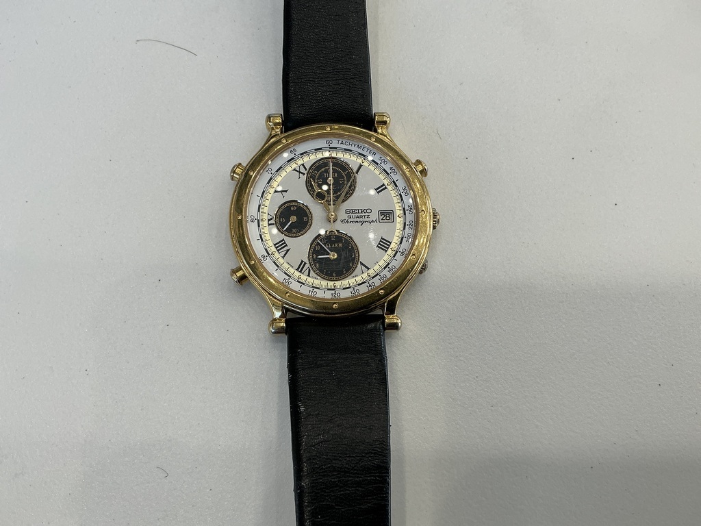 Stainless steel gold plated watch Roman numeral dial Black subdials 500-190-24213