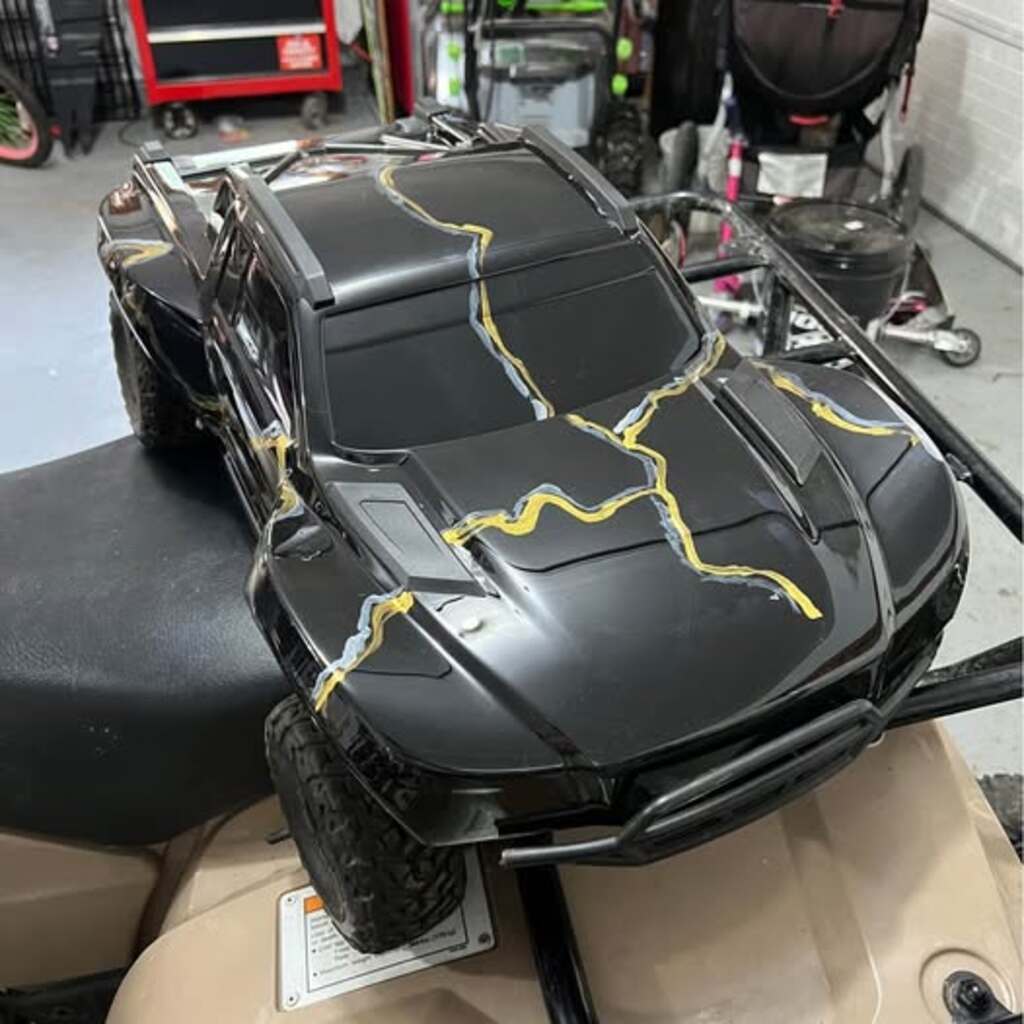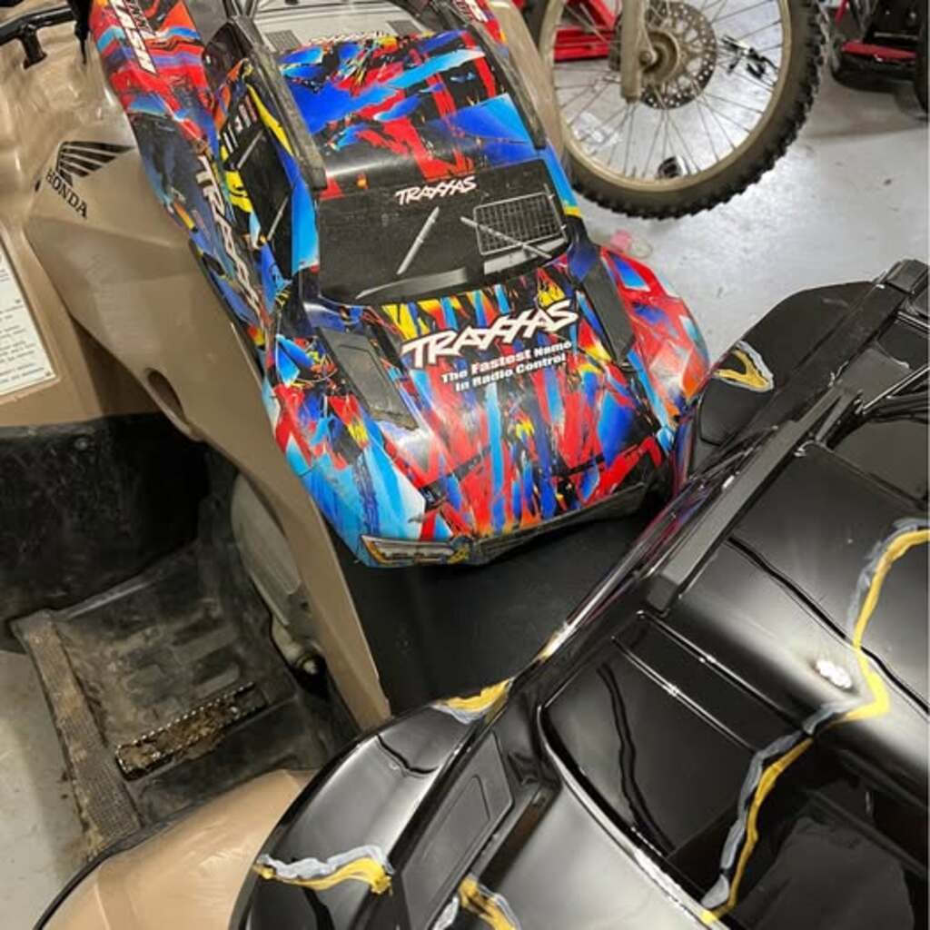 My son was really into RC cars for 3 months. I bought a bunch of spare parts and then he lost interest. This is a full kit, ready to run with 2 x Traxxas 3S batteries, charger and controller. The original body is beat up but it comes with a brand new HD body that’s never been used. He painted it but never put it on the truck. Over 70mph. Roughly $500 in OEM spare parts. Total cost to purchase new is $1460.