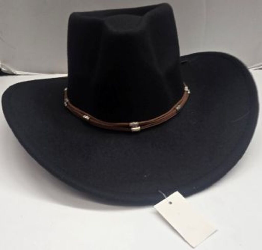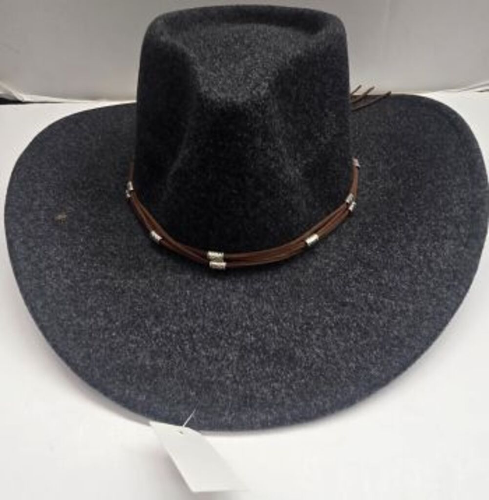 100% Polyester. This cowboy hat is comfortable, fashionable, popular and well-made. Ideal for casual wear or for that special occasion. Made in China. Original Monica hat. FITTING GUIDE: One size.