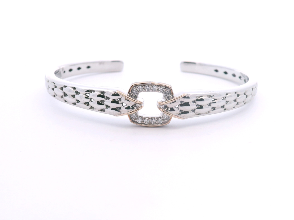 Sterling Italian Silver Hinge Bracelet With .19CTW Diamonds And 14K Solid Yellow Gold Accents SKU# 170-062