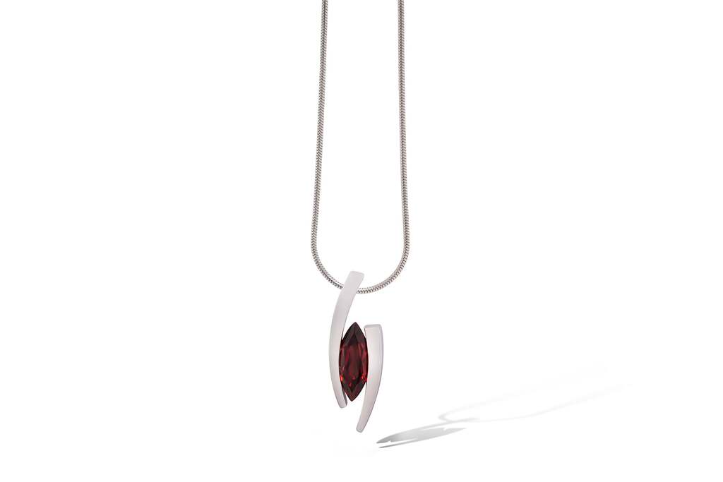 Sterling Silver Contemporary High Polished Marquise Garnet Slide Pendant SKU# 650-195