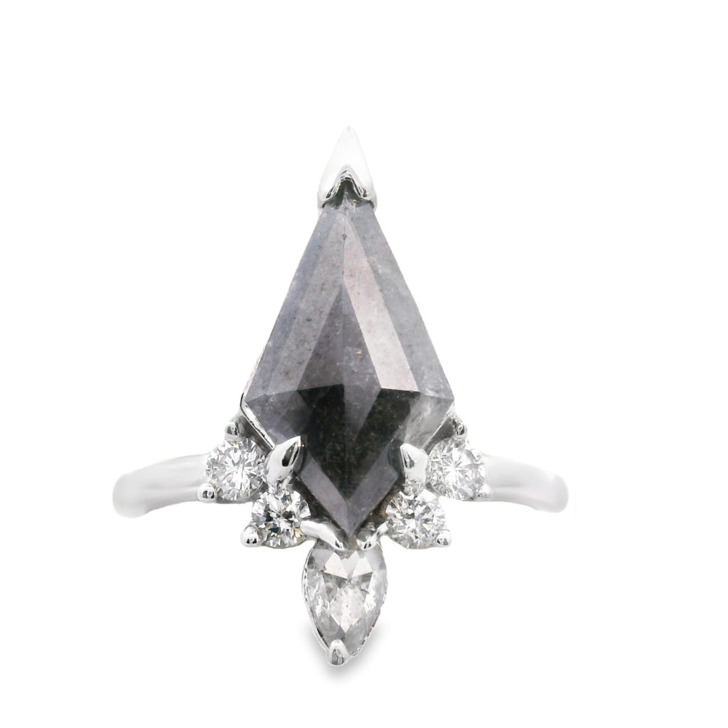 14K White Gold Kite Shaped Salt and Pepper Diamond Ring with White and Salt and Pepper Diamond Accents (1.79CT Center 2.06TDW) Size 7 SKU# 130-155