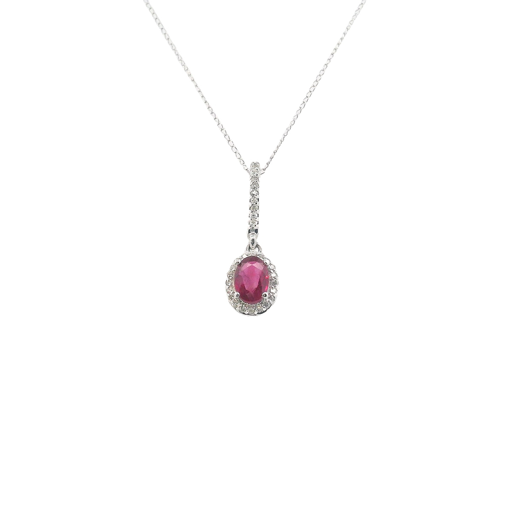 14K White Gold Natural Ruby and Diamond Halo Pendant With Diamond Bale and Complimentary Presentation Chain (.77TGW .14TDW) - SKU#230-229