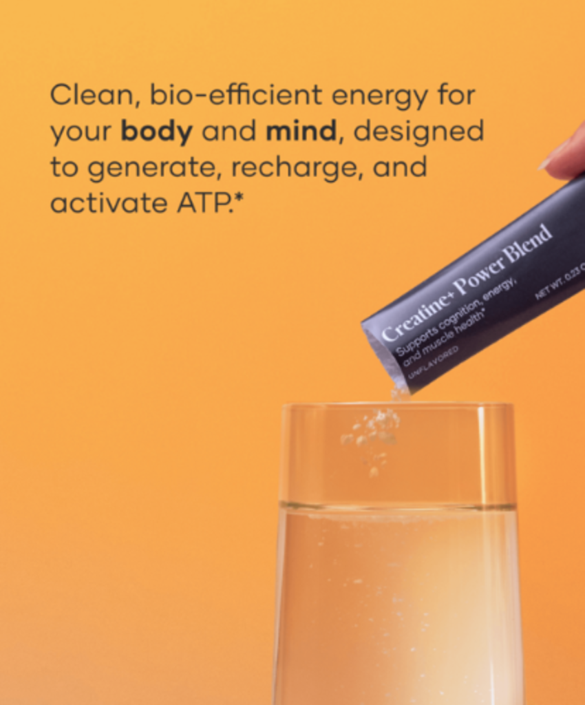Creatine+ Power Blend is more than creatine—it's clean, bio-efficient energy for your body and mind. This advanced formula combines micronized creatine monohydrate with our proprietary Power Blend of polyphenols and magnesium, designed to generate, recharge, and activate ATP, your body's cellular fuel. Use daily to keep your cells fully saturated for strength, stamina, and cognitive health.