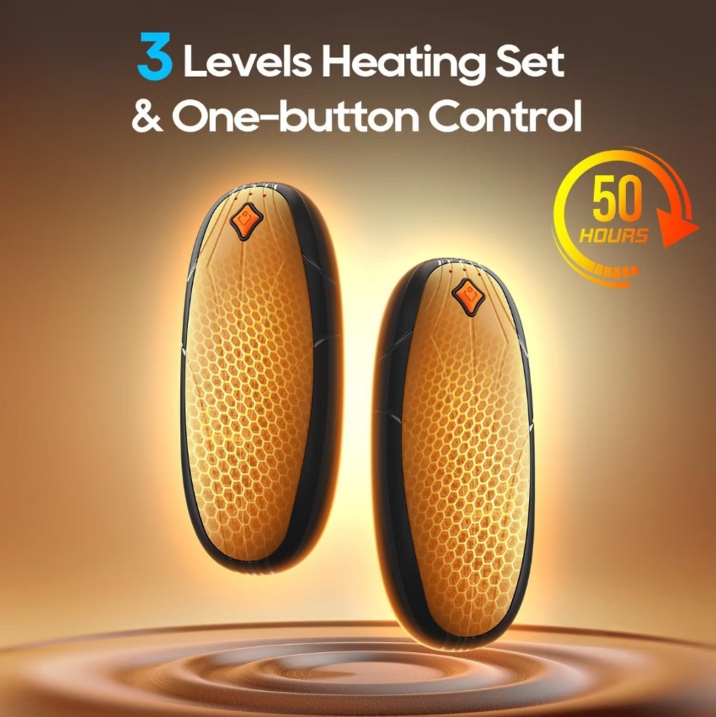 Instant Heating & 3 Gears Temperature: Enjoy instant warmth with the press of a button! The hand warmers heat up in just 1 second and offer 3 adjustable temperature levels to suit your needs: 1st level (35℃/95℉-42℃/107.6℉), 2nd level (42℃/107.6℉-48℃/118.4℉), and 3rd level (48℃/118.4℉-55℃/131℉) providing Long-Lasting Warmth for versatile comfort for any situation.