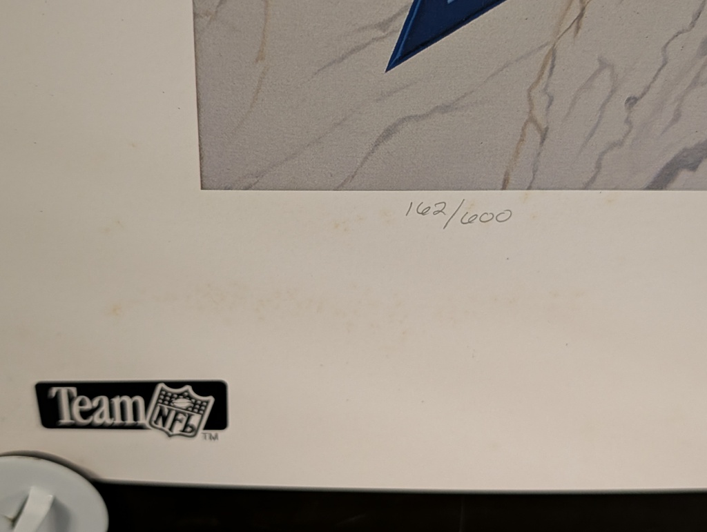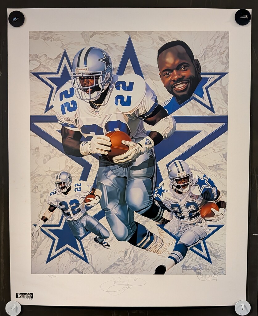 Signed by Emmitt Smith of the Cowboys and artist Danny Day. 100% authentic. Comes with a Certificate of Authenticity and a lifetime money-back guarantee. Please see the photographs provided to review your item in detail. Measures 28" by 22". Packed with care, comes gently rolled.