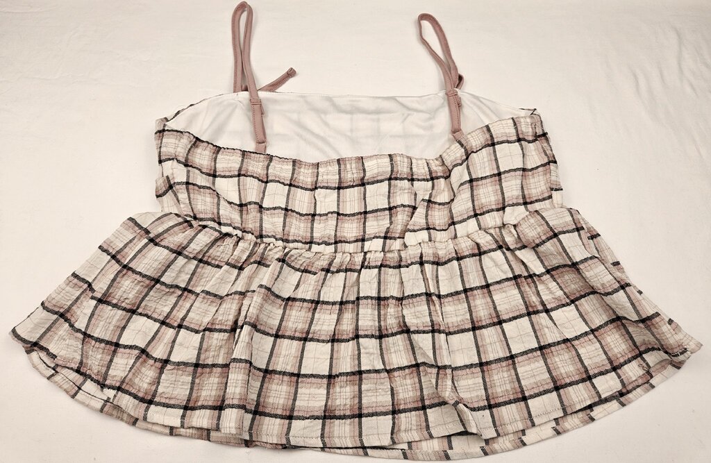 Trendy Planet Heart plaid cami top in soft pink tones.