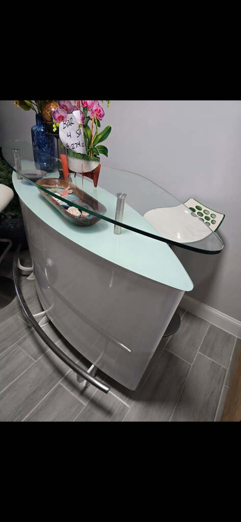 This bar is very sturdy heavy .It's metal glass and I think fiberglass, and it has storage in the back.