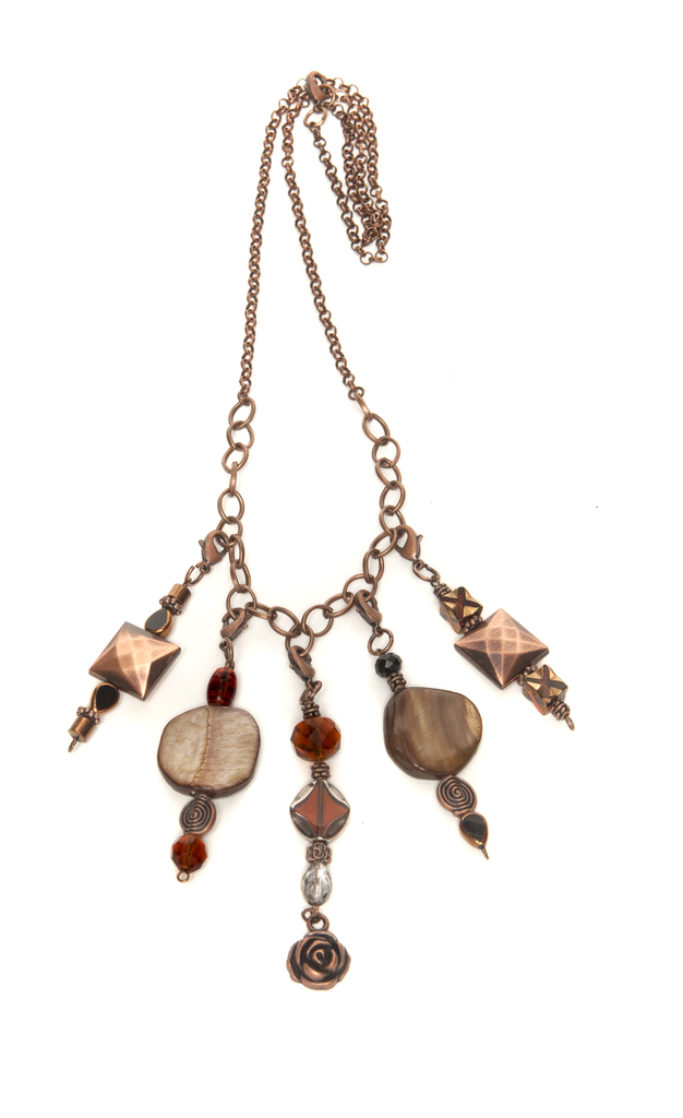 Includes 30 inch copper colored necklace with interchangeable dangling beaded headpins. You can move these headpins anywhere on this necklace, or remove them and use for a purse/zipper/bag/fan pull, phone charm, or place it on any of your current jewelry accessories. Very Versatile piece, and 100% Handmade! Visit StaceysUniqueBoutique.Shutterfly.com to see our entire Vintage Inspired Collection.